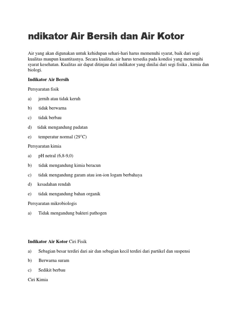 Indikator Air Bersih Dan Kotor Pdf